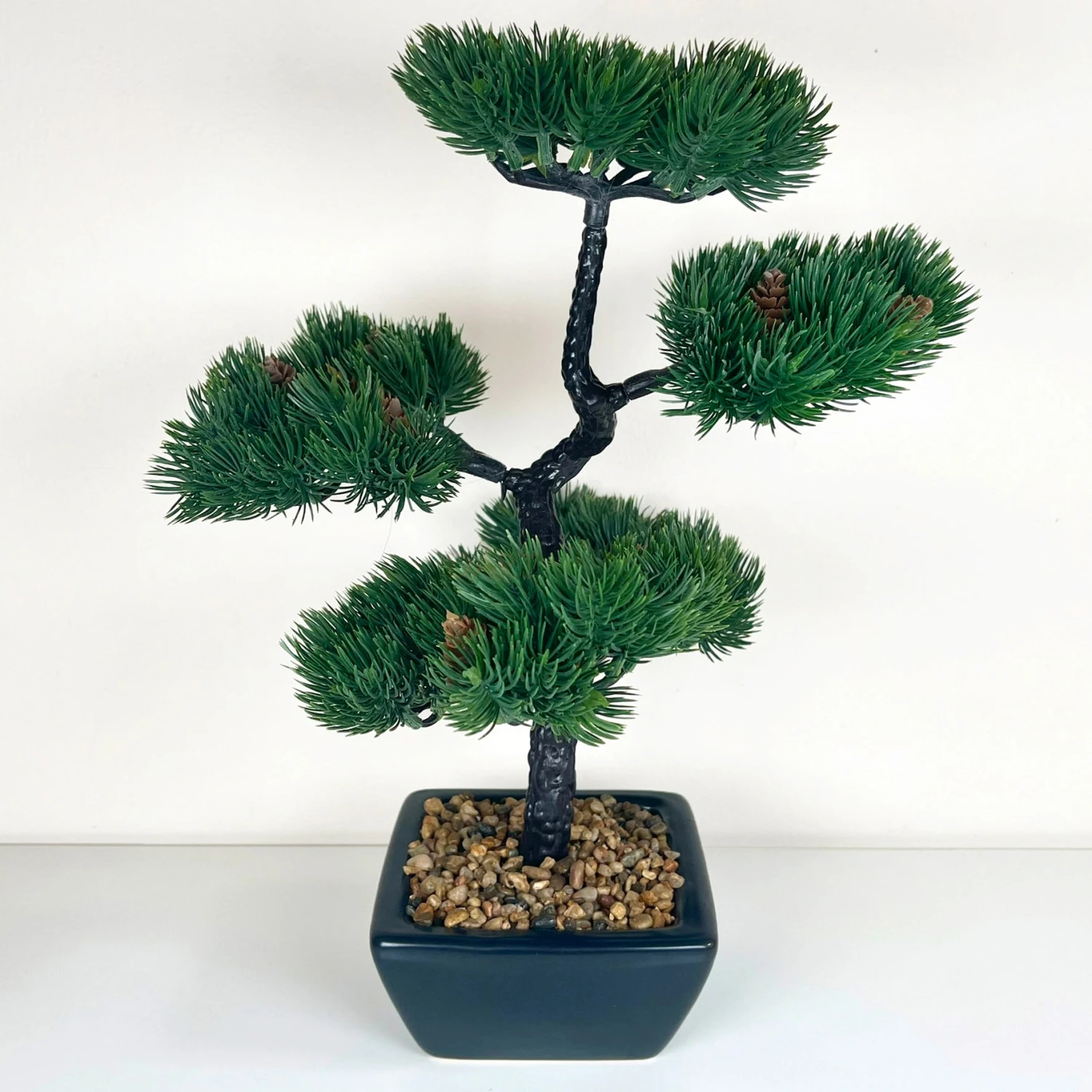 Featured deep green leaves and made from recycled plastic, these artificial bonsai trees, potted in a bed of gravel stone are a great houseplant that comes at little cost with no maintenance whatsoever. A perfect alternative to a real plant that you can rely on all year round.