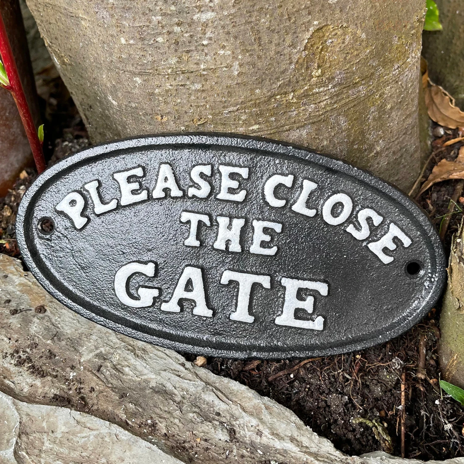 This wall mounted sign has a distressed vintage black finish. It is made from high quality cast iron, designed for outdoor use. The text reads ‘please close the gate’. It will look great in your garden on the wall or gate.