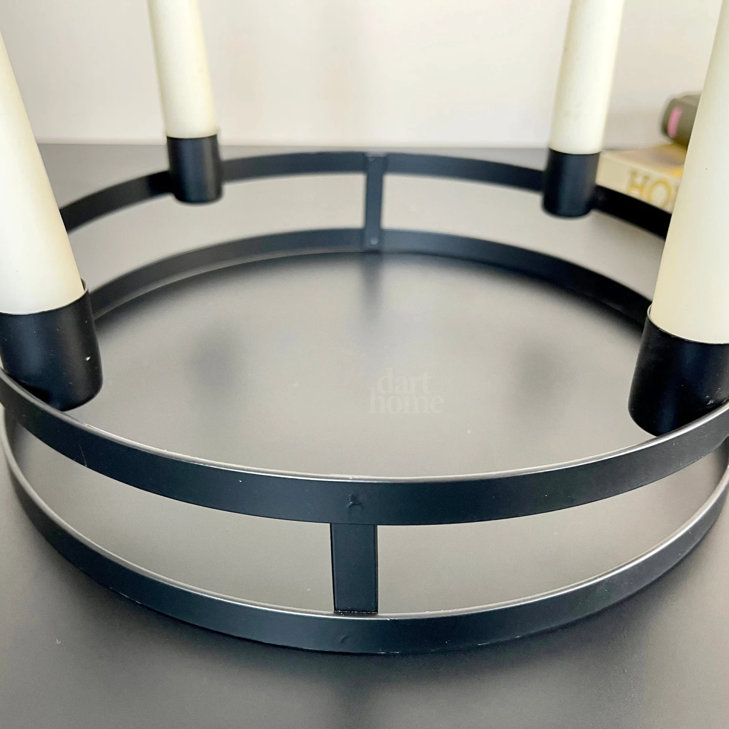 A multi arm circular candlestick holder that can raise four church candles, this quirky monochrome round candlestick holder captures a classic design in a smooth matt black finish. It will easily mix into your exiting neutral home decor wherever it is placed, whether that be in the living room, bedroom or bathroom.