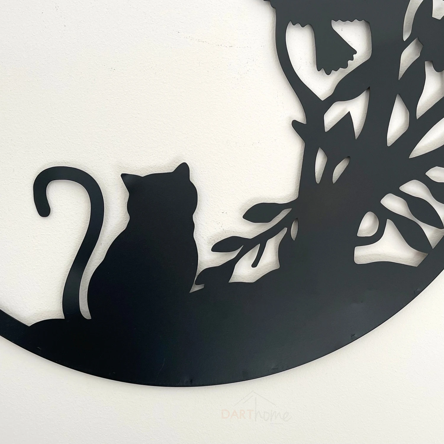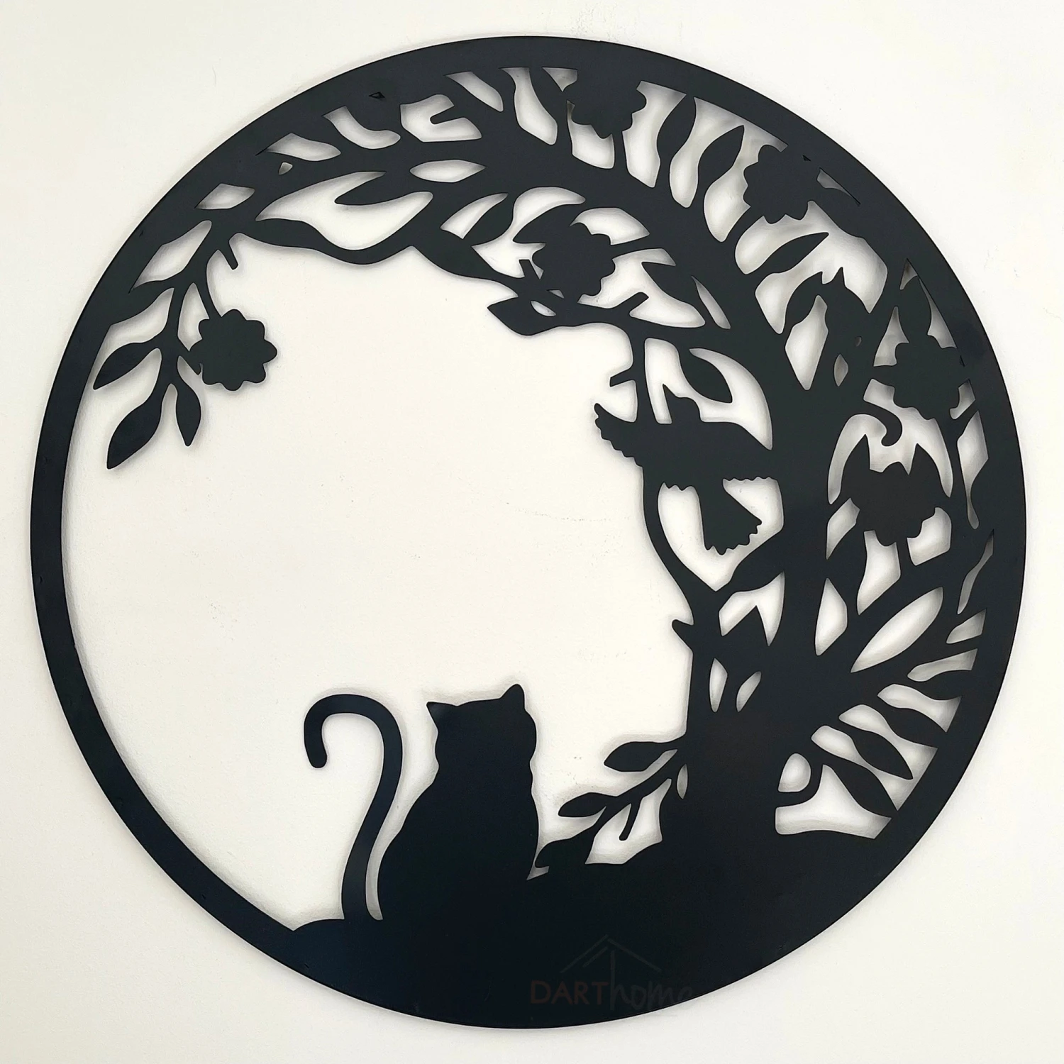 This black wall art captures a traditional british garden scene featuring a cat sitting in the bushes, whilst using dark coloured metals creating a gorgeous silhouette illusion. It can be used indoors and outdoors and is a wall mounted piece.
