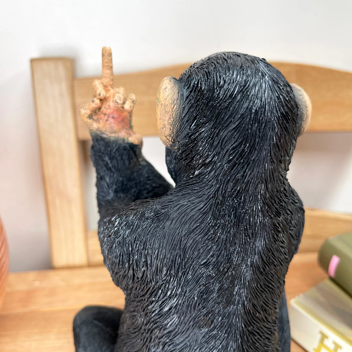 A hilariously rude and cheeky monkey gesturing the classic up yours with its middle finger. The novelty sculpture features a monkey in a realistic black textured finish. It is a resin ornament that will be a talking point in any indoor or outdoor space.