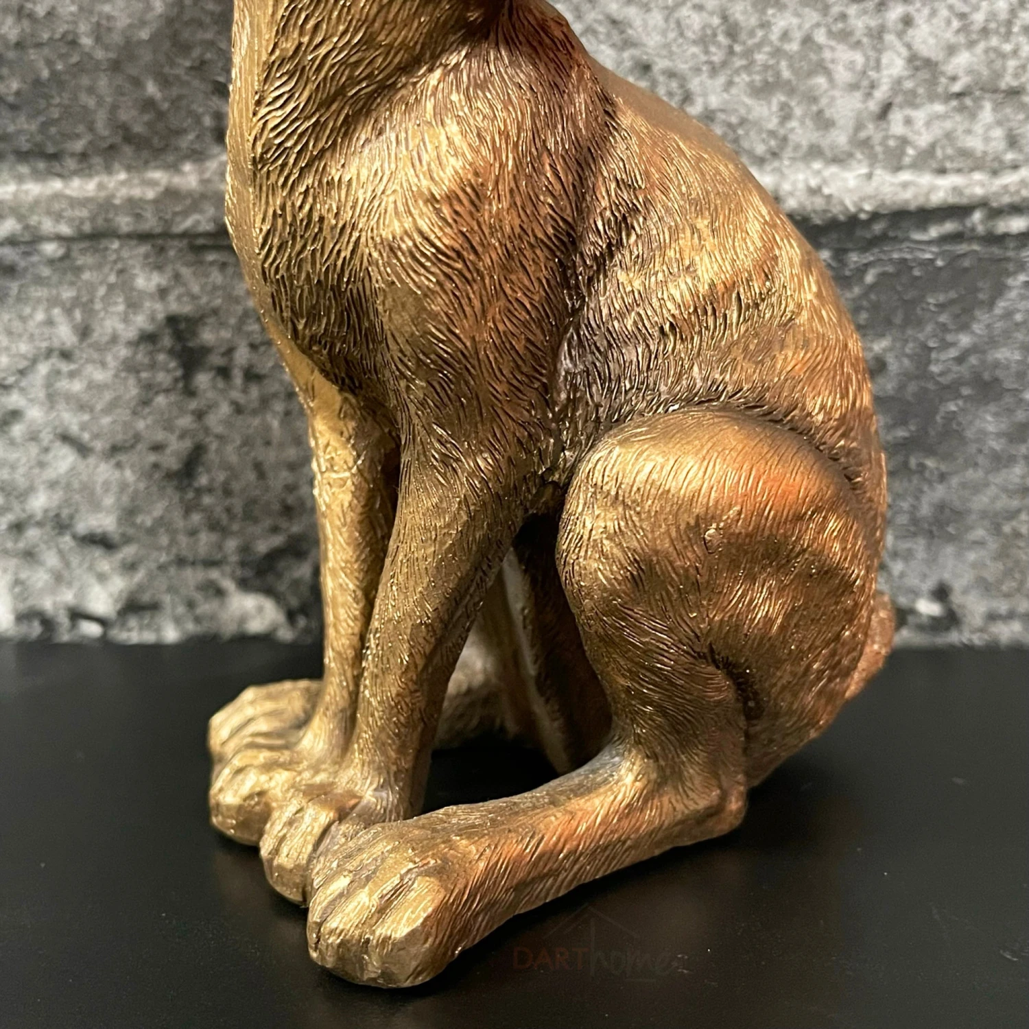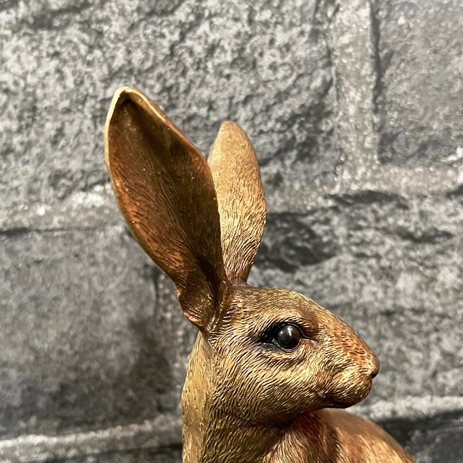 Sitting march hare ornament designed for indoor home use to add some character to your home decor. Made from resin with a textured bronze effect finish. Will be a feature point of any room.