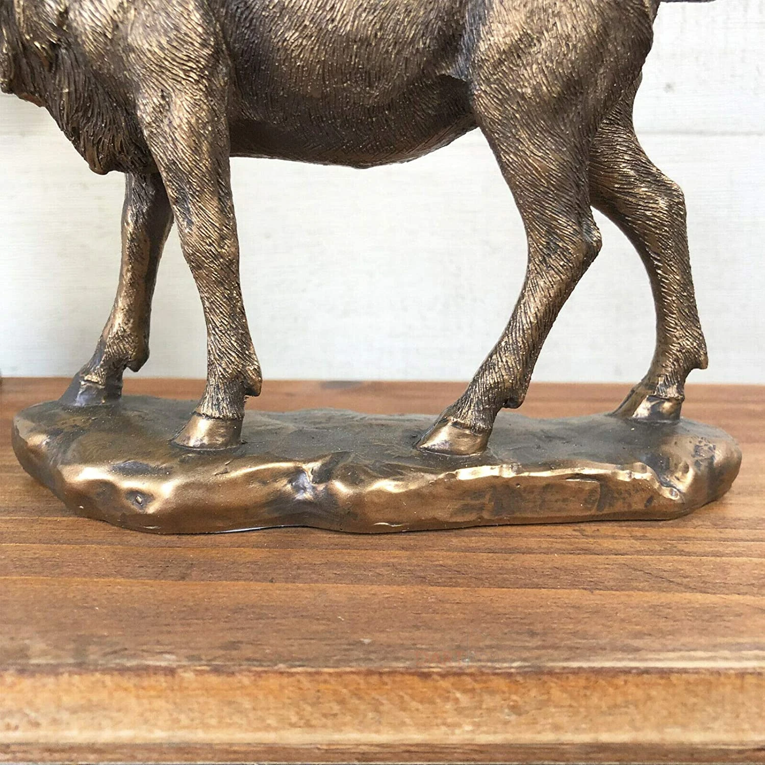 Crafted from bronze effect resin, this high quality detailed handcrafted stag standing sculpture will work as a perfect shelf sitter in your home. It is designed for indoor use.