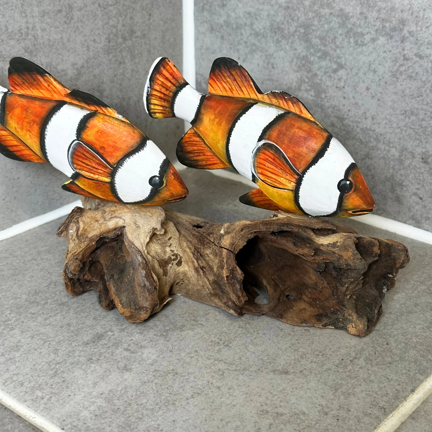 Bring a splash of the ocean to your home with this delightful Clownfish On Driftwood Coral Reef Sculpture! This rustic tropical sea ornament is a perfect conversation starter. The driftwood adds a unique touch, capturing the essence of a Caribbean tropical beach.