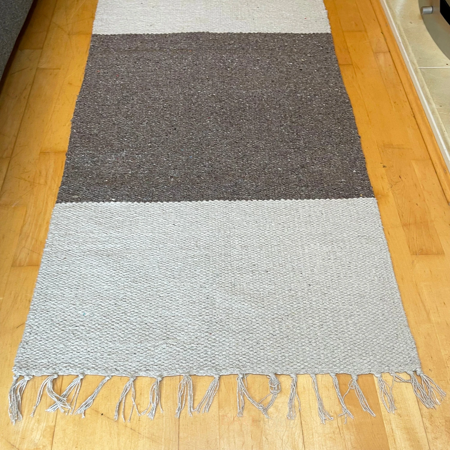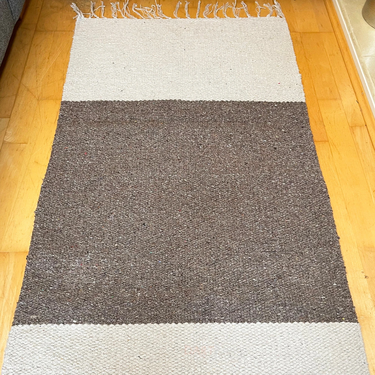 Classic, traditional, neutral living room rug in a two tone design with a dark grey centre. This rug is perfect for an open area that needs a touch of decor and natural colouring. These rectangular rugs come in 75x135cm size and are perfect for the lounge or bedroom area.