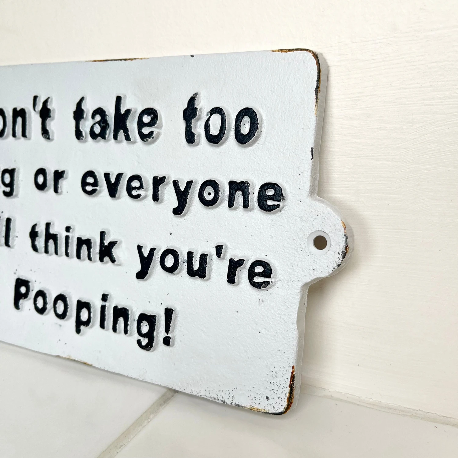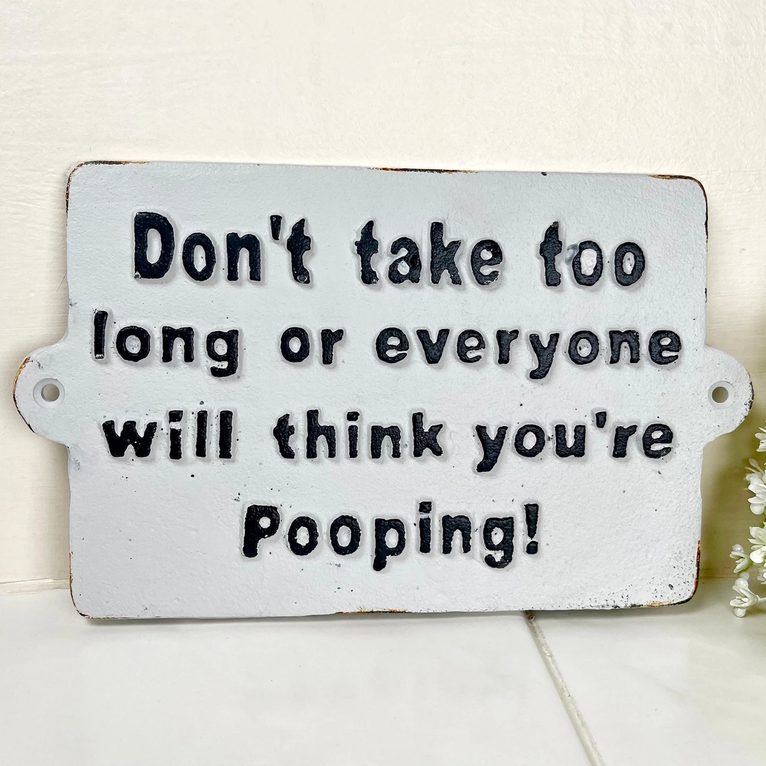 This hilarious cast iron plaque can be used outdoors and indoors and will keep your family or guests in check when using your toilet.