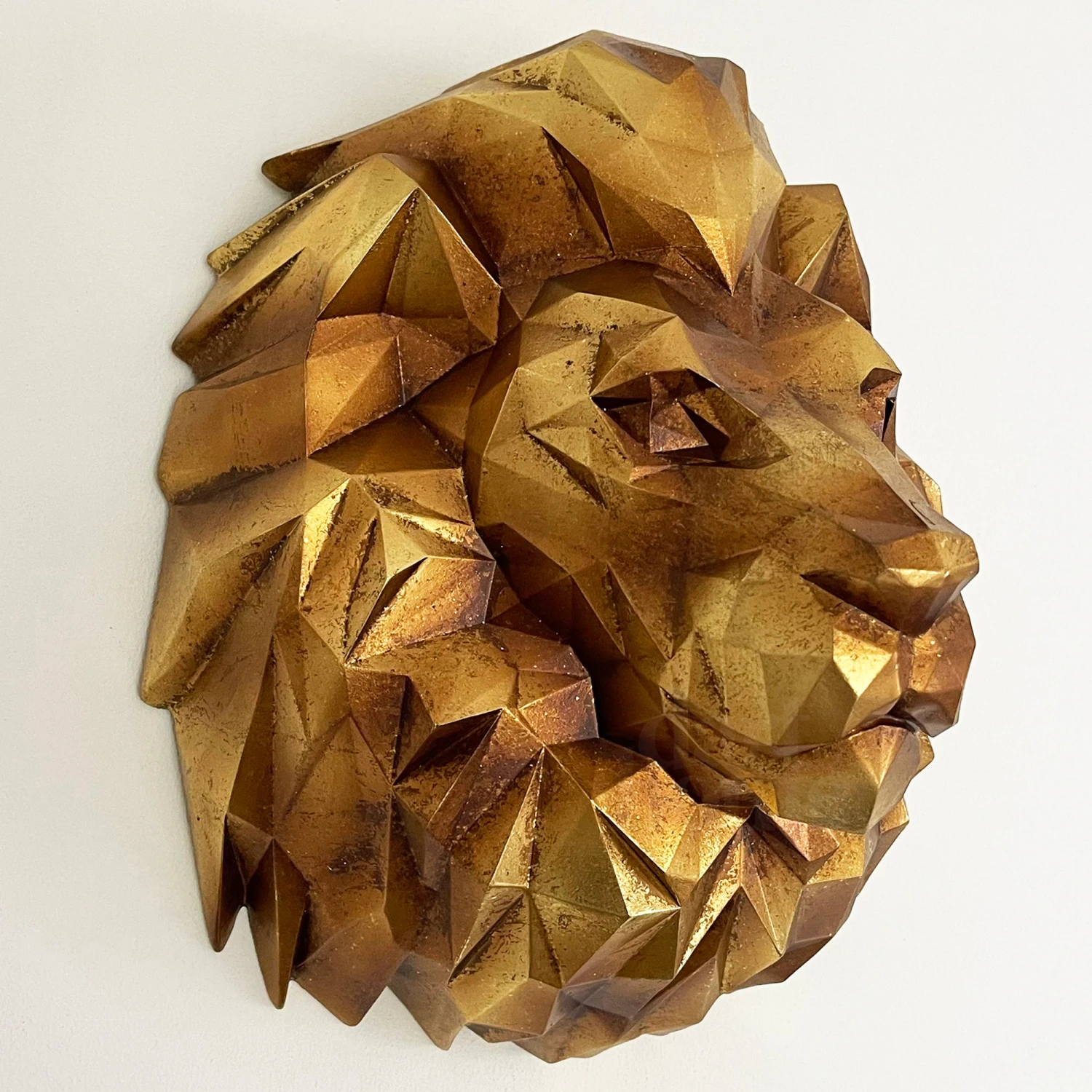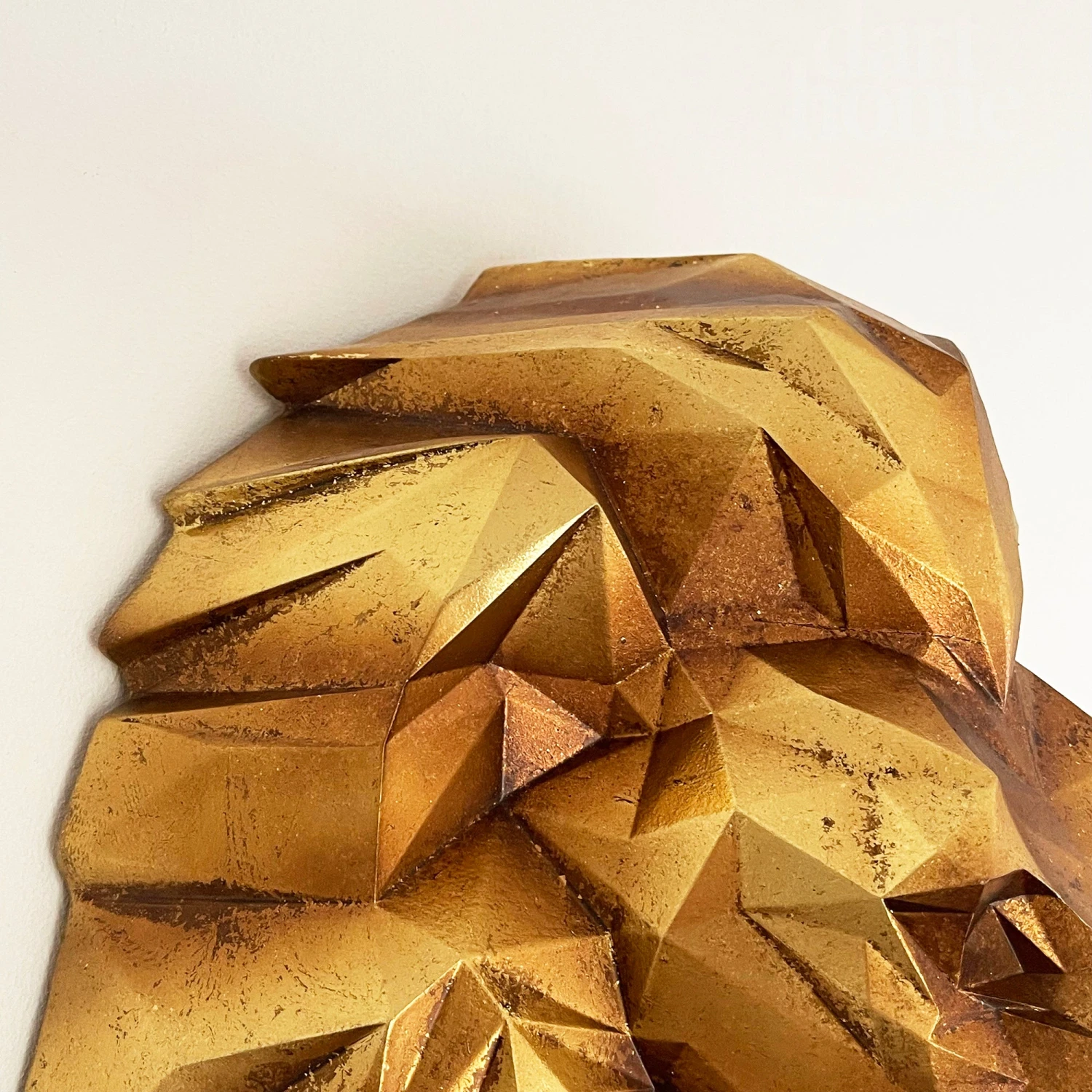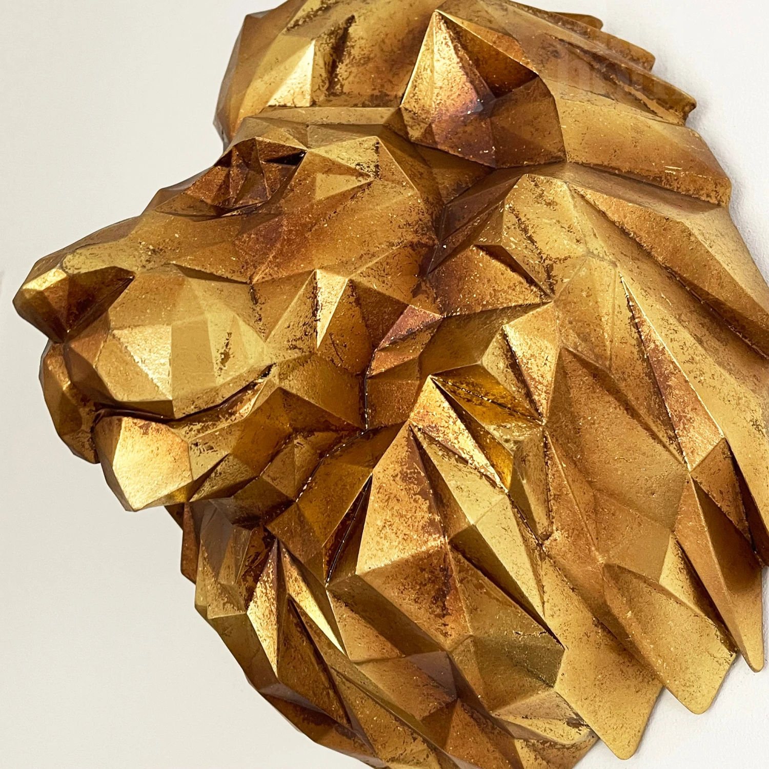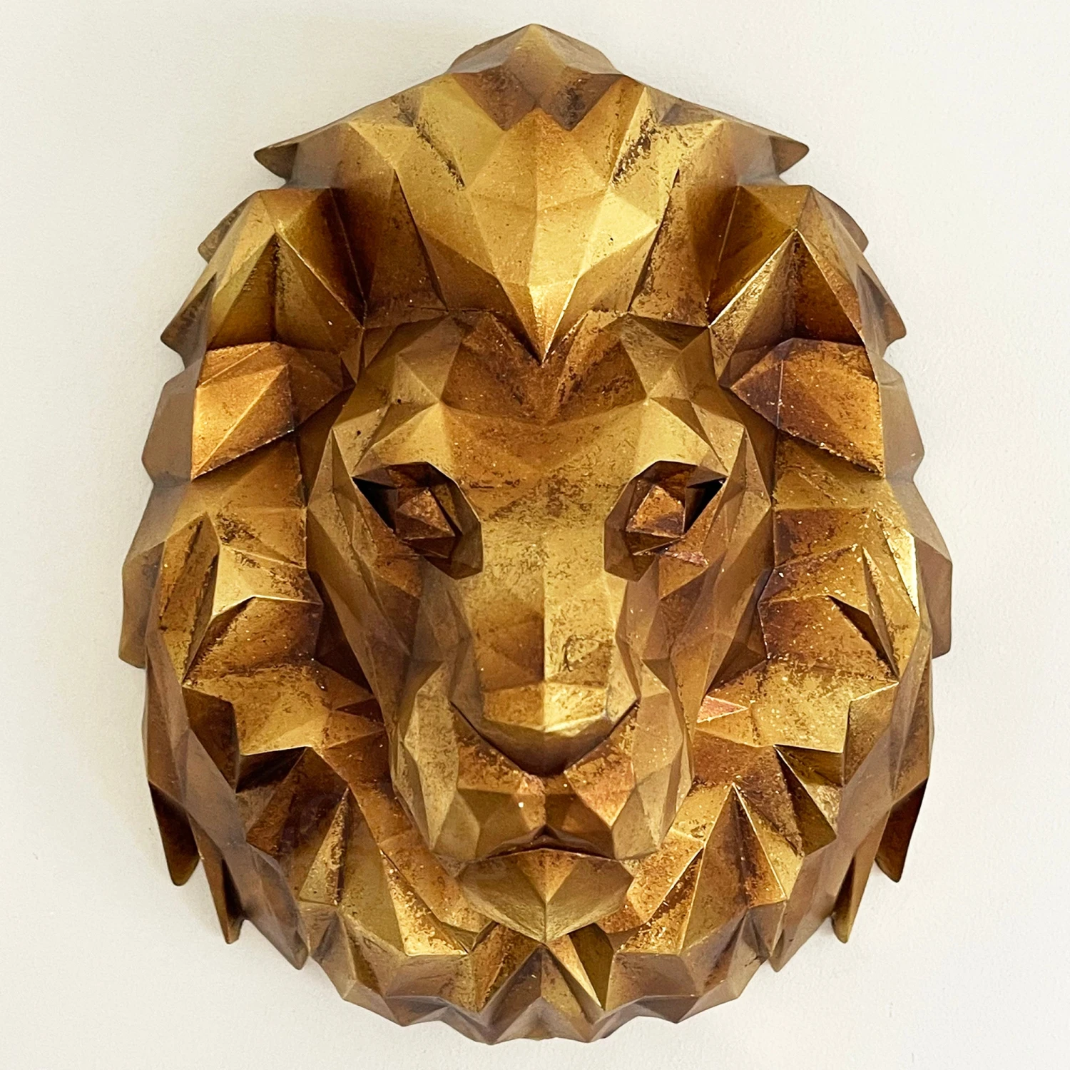 This wall mounted lions head is made from detailed, texturised resin with a bright gold geometric look. It is made to be wall mounted and is suitable for any room in the home. The antlers are detachable and this is a very easy assembly product.