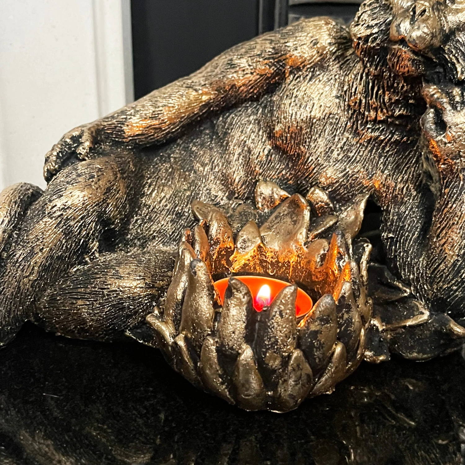 Available in size small and large, these monkey candle holders capture a cheeky laying monkey with a single tea light capacity on the front. With a lit tea light candle, the monkey will luminate the room and be a focal point wherever placed.