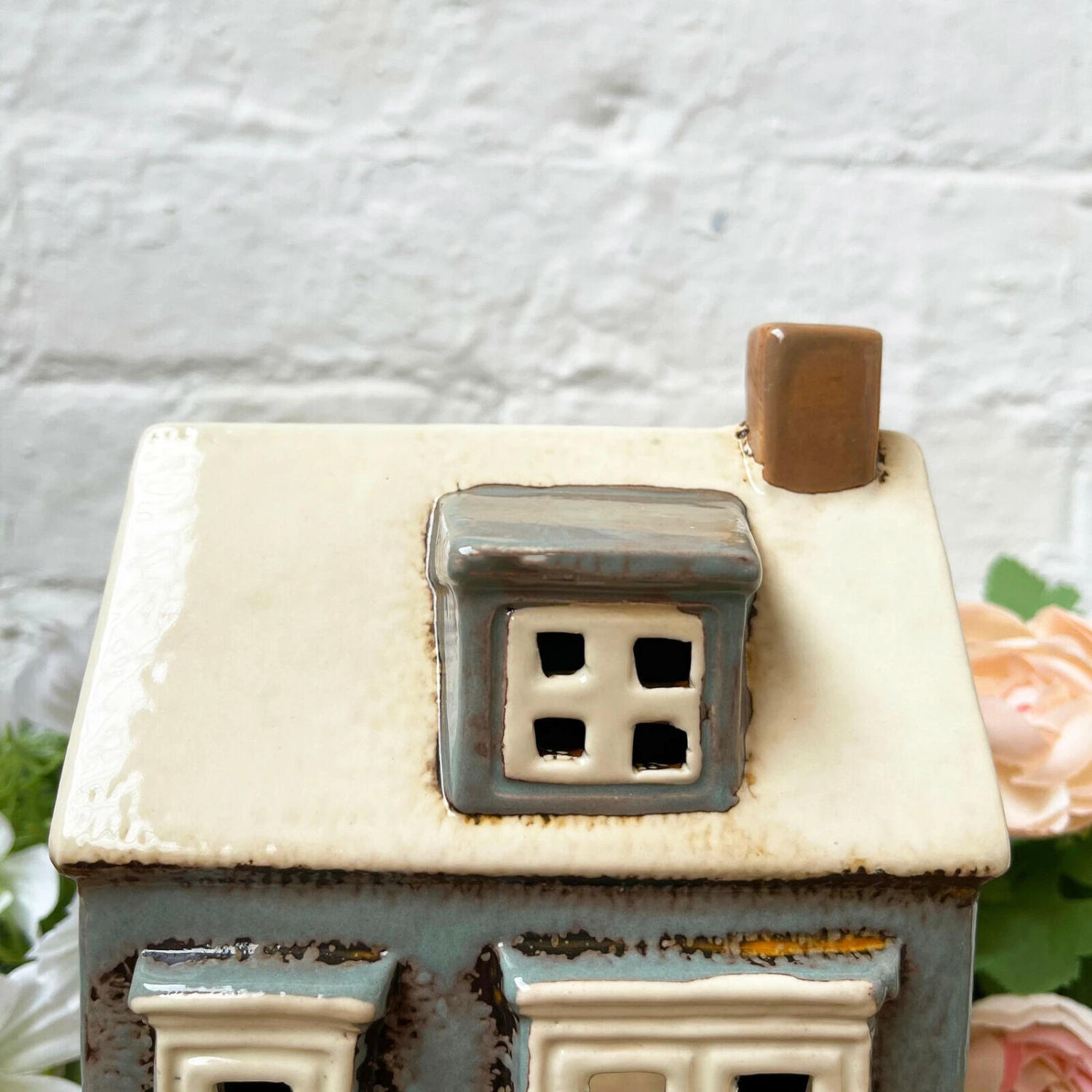 This ceramic village country house tea light holder is delocately made and painted to perfection. It will look great in any setting.