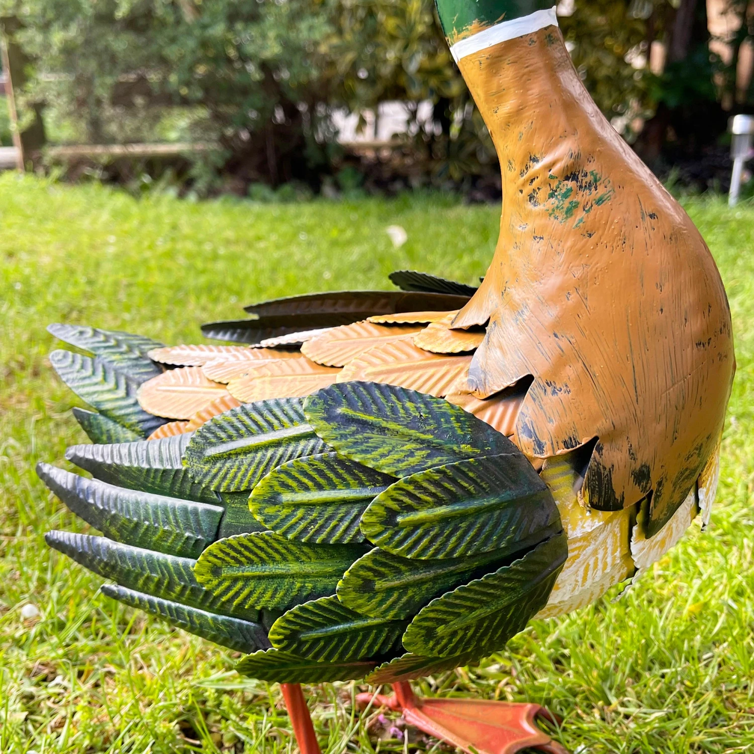 This light brown bodied mallard duck garden ornament makes your outdoor space a happier place. Sculpted from sturdy iron metal, weatherproof and designed for outdoor use. Each duck statue finished with a distressed, vintage style paint with realistic colouring.