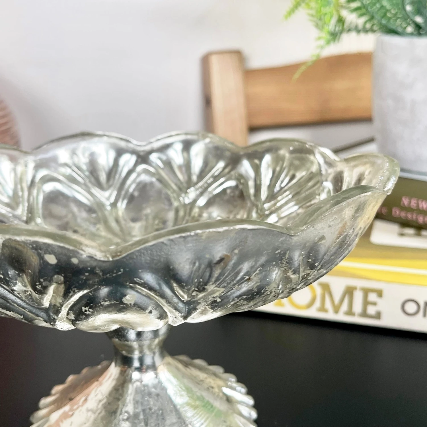 A stunning goblet candle holder that will be the focal point of the room, and a sublime decorative item for any table. Made from mercury glass and metal, this stylish candle holder is a must have for your home.