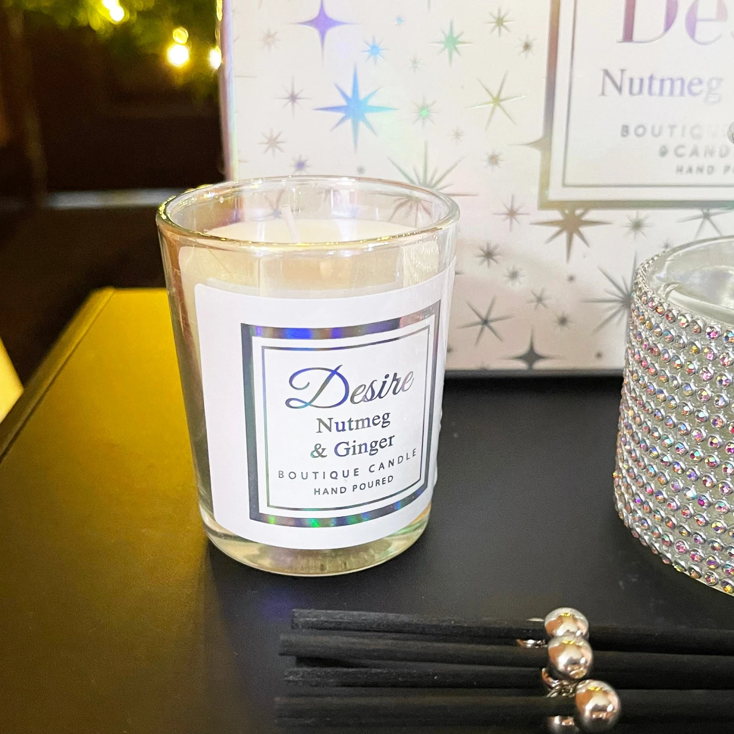 This white gift boxed set comes with a beautifully scented candles and incense sticks with a diffuser. The scent is nutmeg and ginger. It is a perfect set for aromatherapy and a great smelling home fragrance that a loved one/ friend will love to recieve as a present.