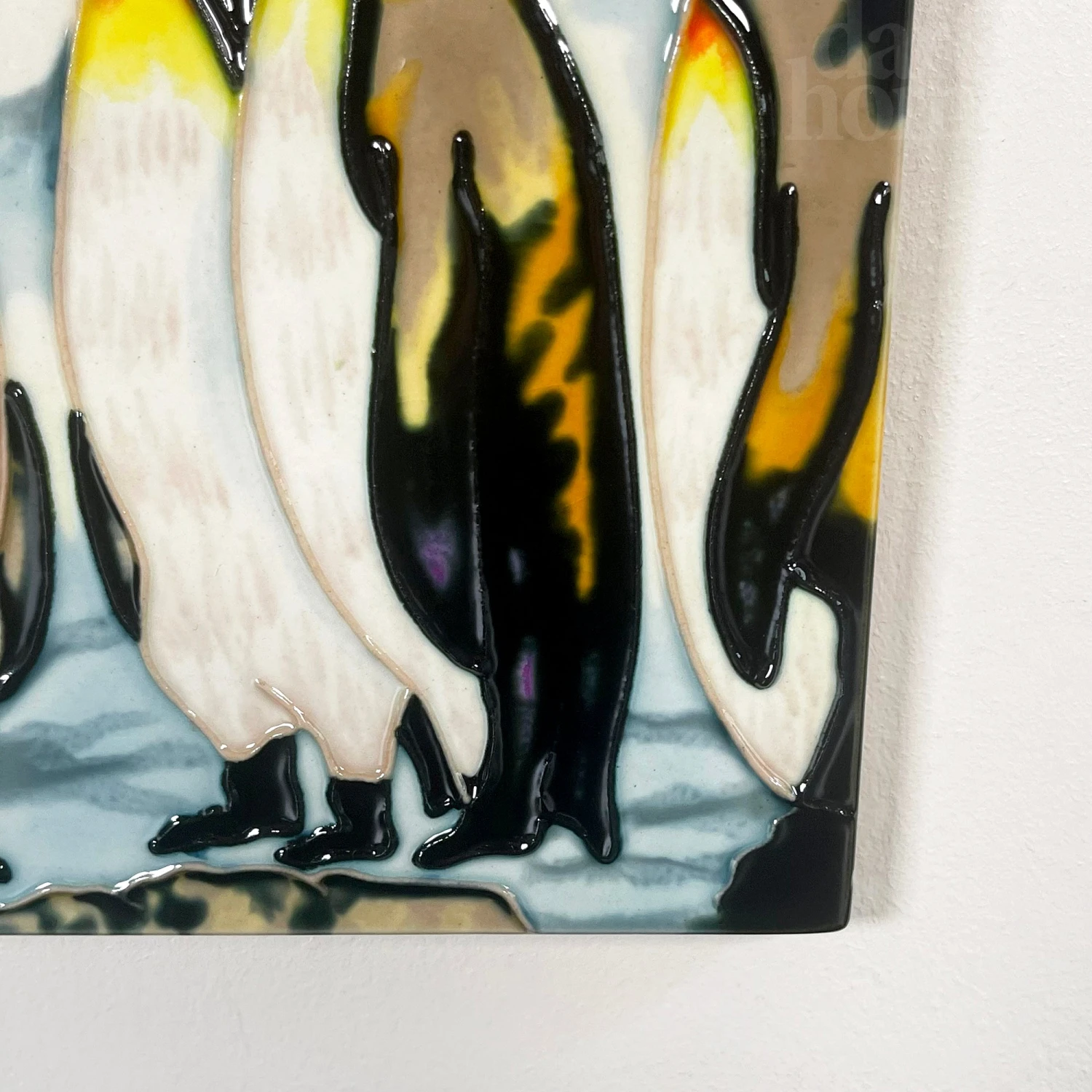 This beautiful square ceramic tile wall art captures a cute group of penguins having an important meeting on the snow. This eye catching decorative plaque is made from ceramics and is hand crafted and painted to offer this unique, colourful look. The tile has perfect attention to detail which will go above and beyond to enhance a bathroom wall.