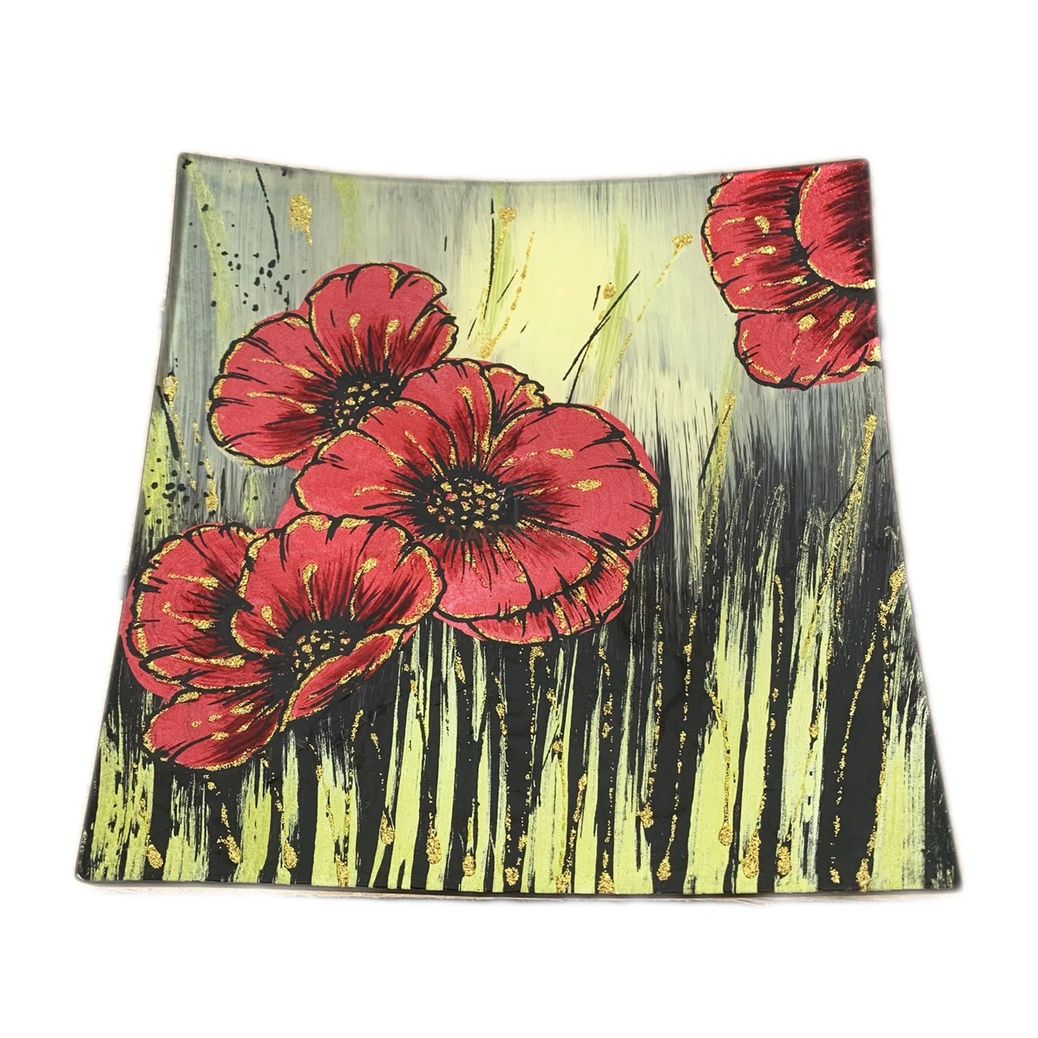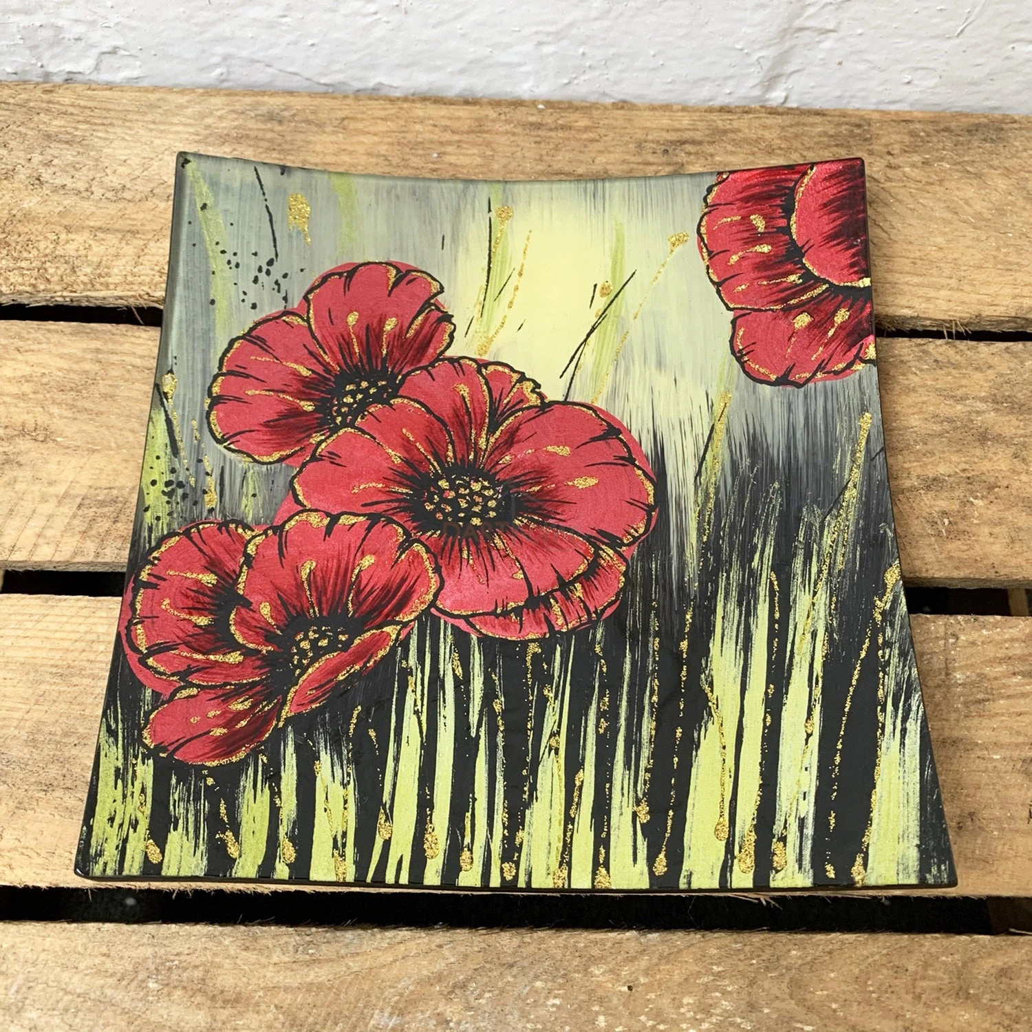 Retro style red poppy decorative plate in a glossy finish. Suitable for coins, change,keys & jewellery.