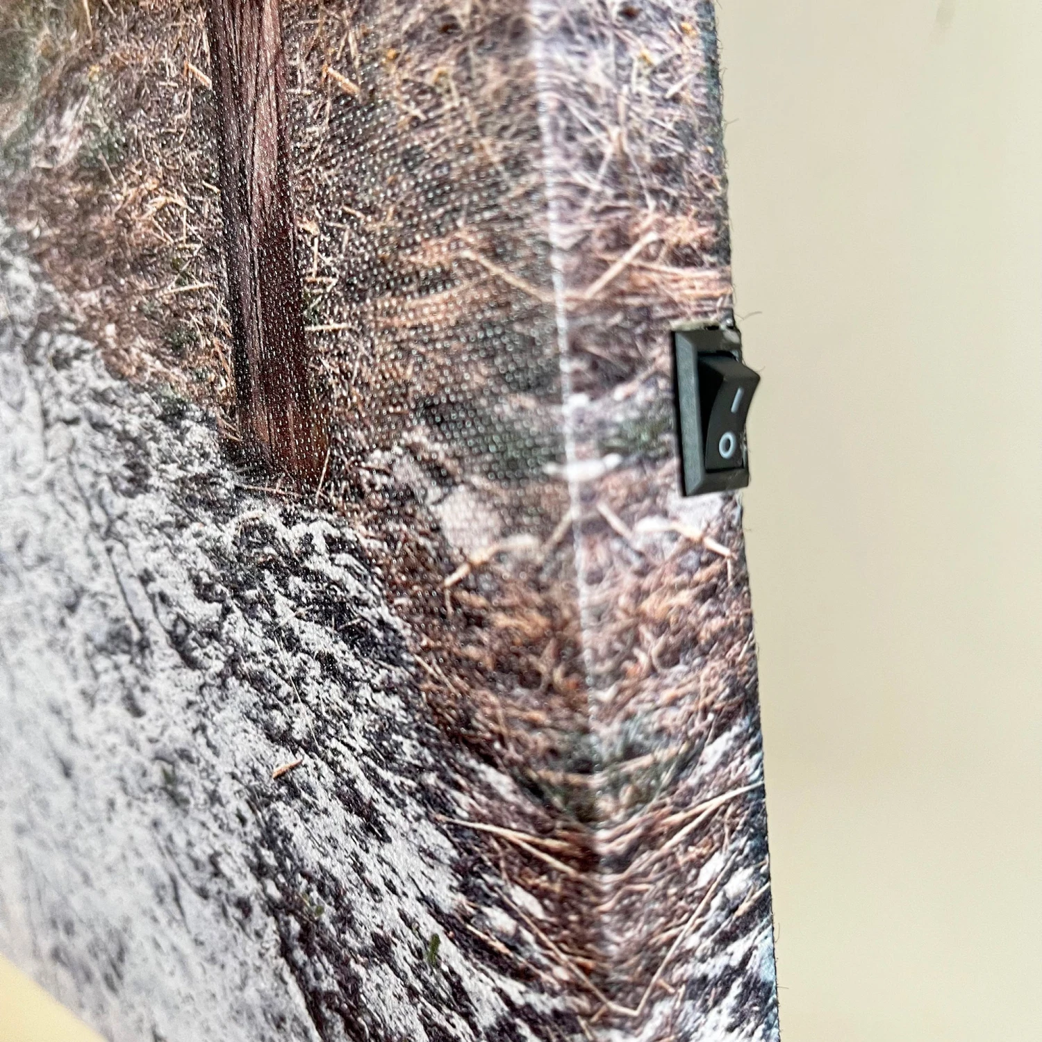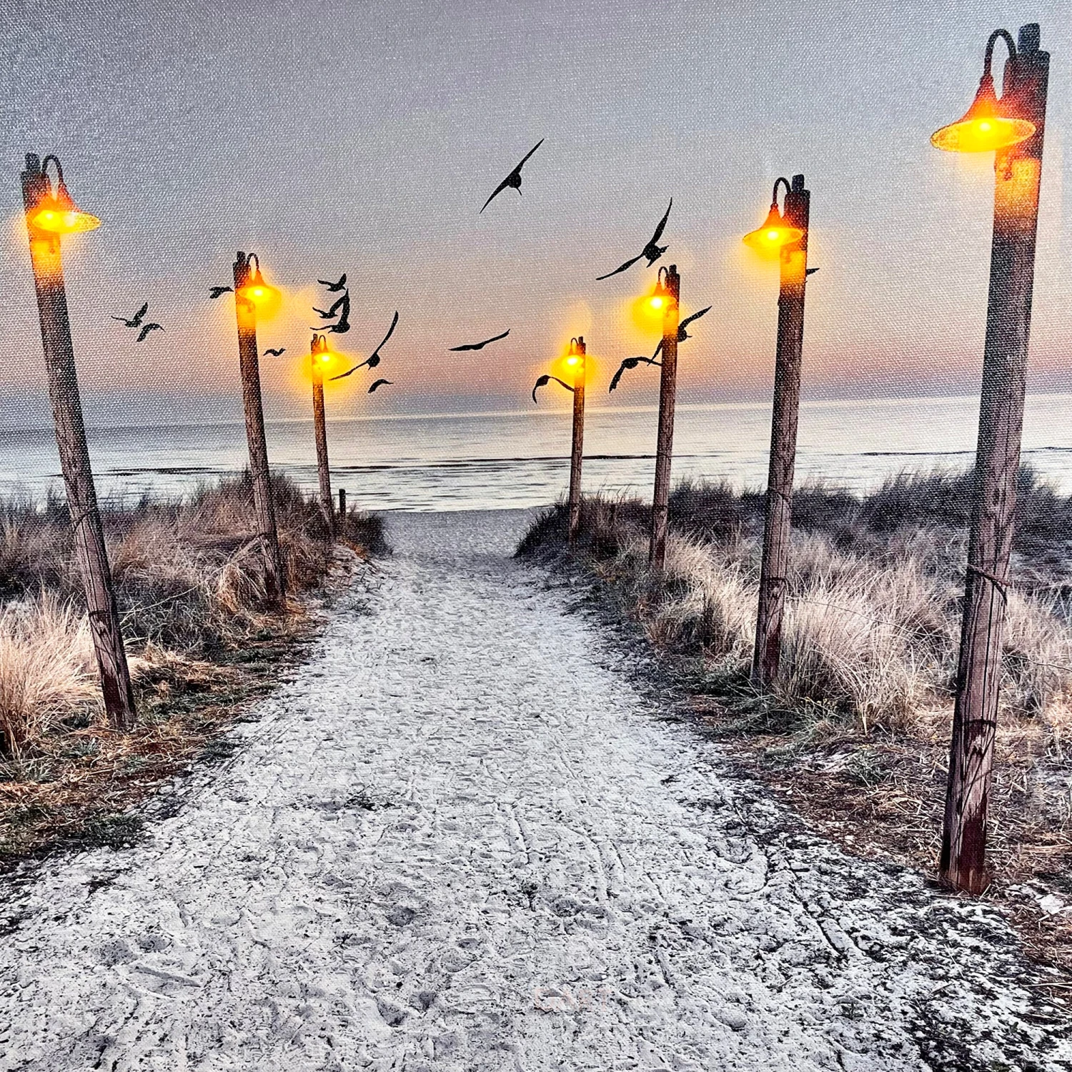 This LED lit square canvas is a stunning piece of wall art with a HD printed seashore beach scene printed onto it. It is a colourful piece with a switch on its side to turn on the specially placed LED bulbs.