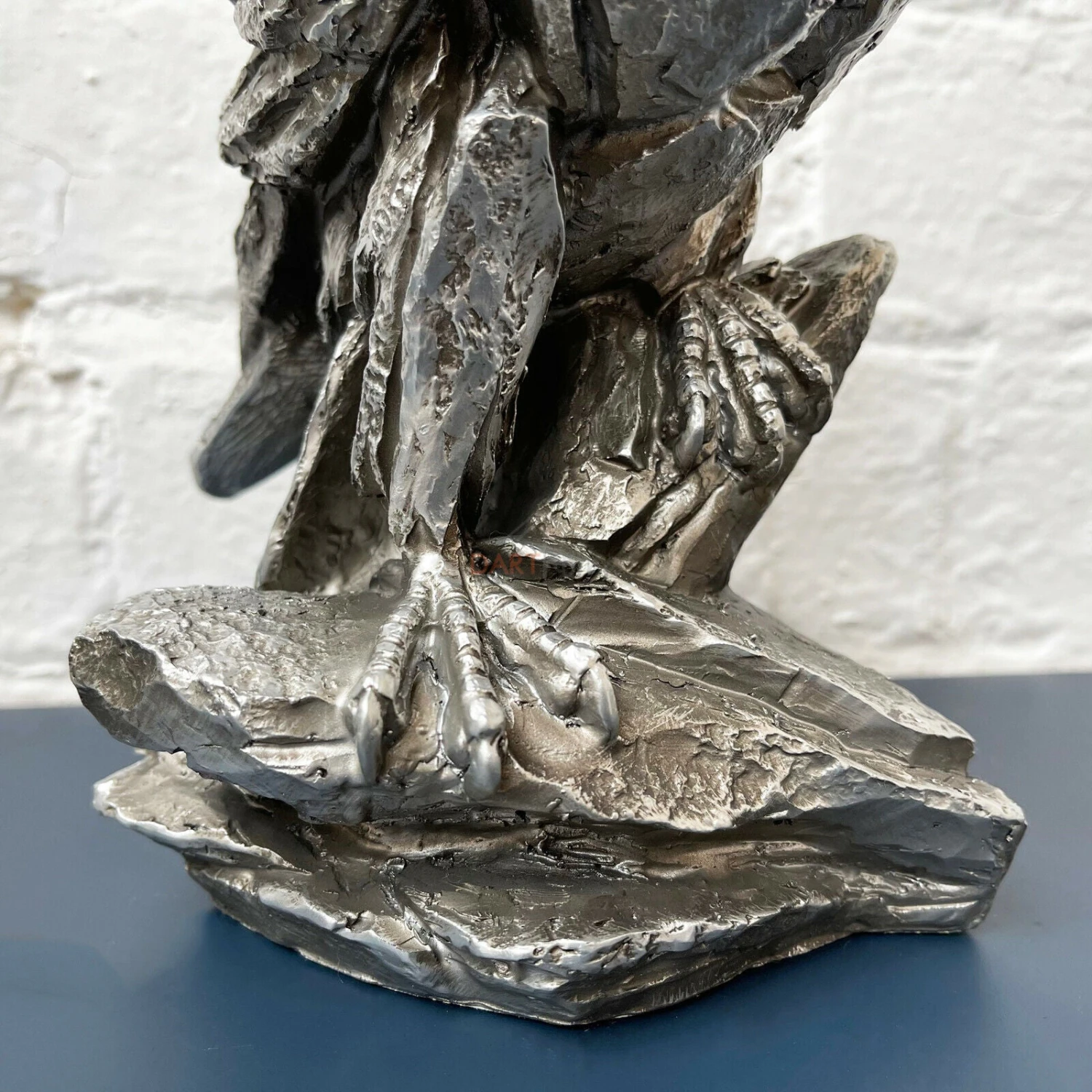 This perched eagle is made from resin in a wood chunk effect, moulded together to make a beautiful shelf sitting animal ornament. Perfect indoor sentimental gift idea for eagle and bird lovers.