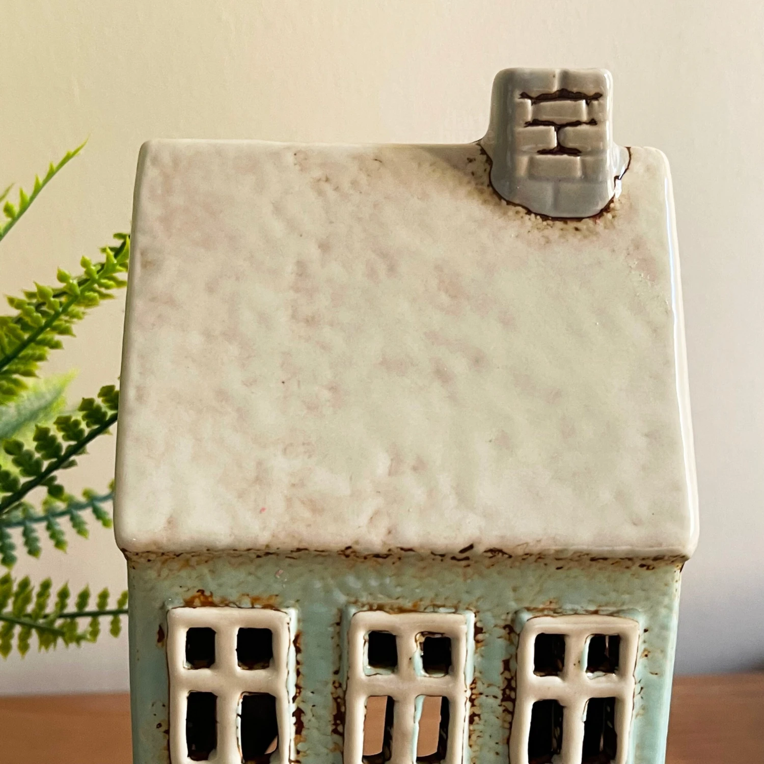 This perfect petite ceramic village cottage house candle holder is delocately made and painted to perfection. It will look great in any setting.