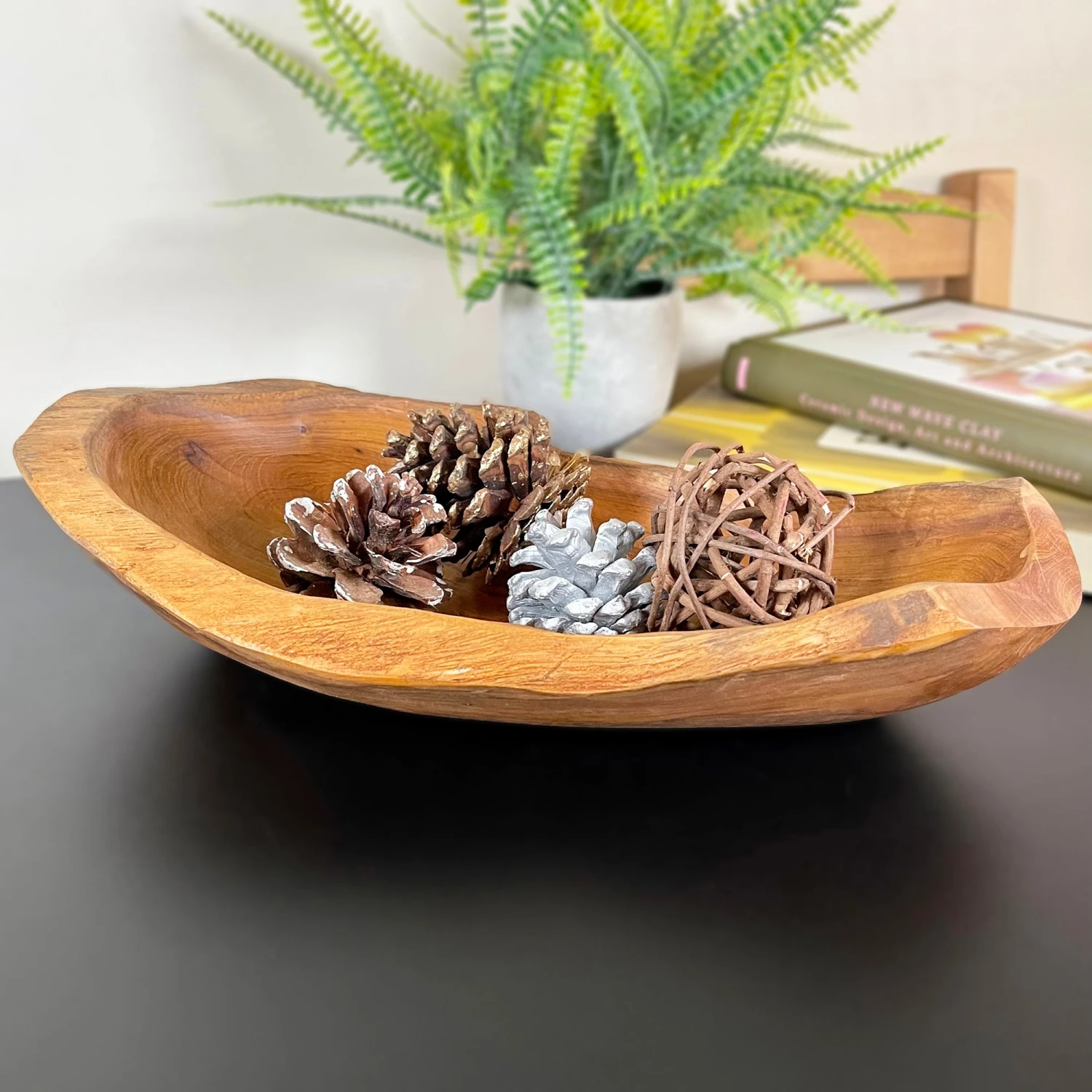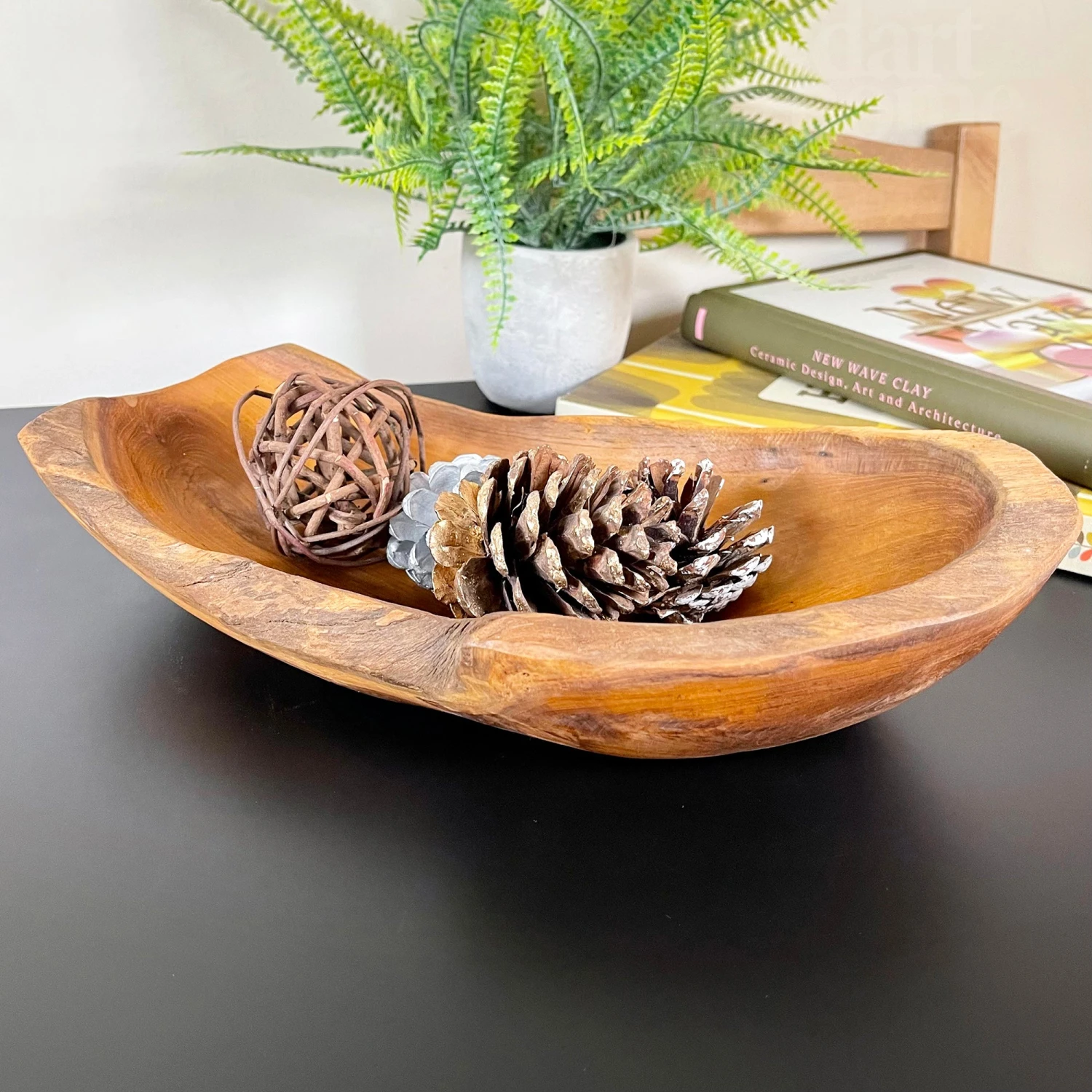Add a vintage touch to your next get together. This beautiful root wood long bowl is ideal for fruit and for decorative purposes.